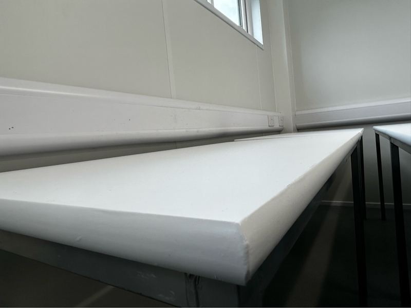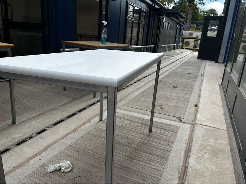 Solution – the team carried out all the remedial work to the tables and Vinyl Wrapped the tables which transformed the tables and refectory area.